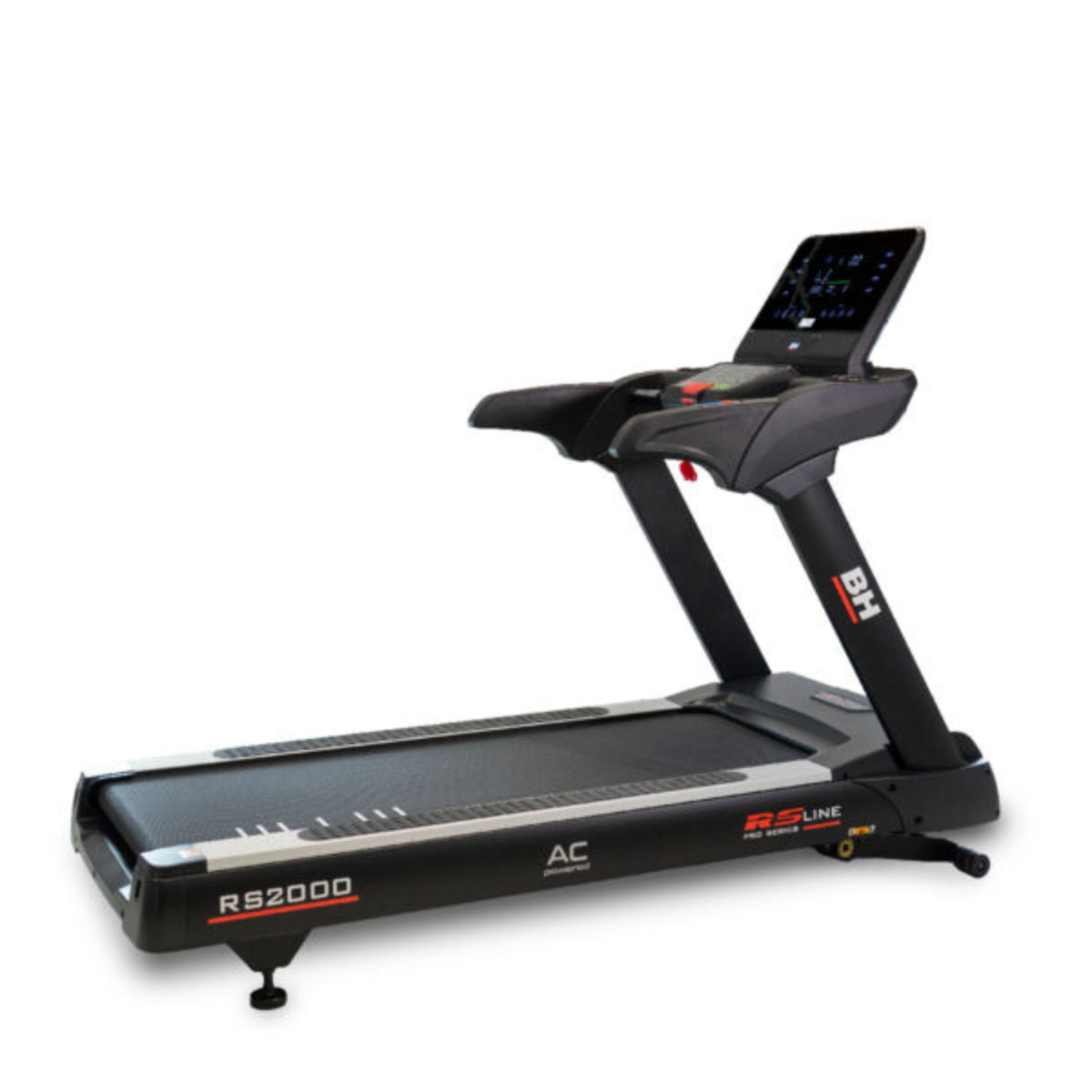 The BH Fitness RS2000 Treadmill is driven by a powerful Commercial 4 HP AC motor, the RS200 Pro is a durable, ultra-smooth treadmill ideal for intensive use in a home gym or suitable for commercial settings such as sports clubs, leisure centers, and Hotels. The RS2000 Treadmill features an extra-wide running area which is 163cm x 60cm and an oversized frame,25km/h top speed, 15% incline, included workout programs, and a Max user Weight of 180kg. The Rs2000 led treadmill has been created to be at the Forefront of fitness. Its modern design and robust frame offer durability and stability even in the most demanding of locations. Equipped with Bluetooth FTMS Technology, it syncs easily with the main fitness apps such as Zwift and Kinomap to take your Performance to the Next Level